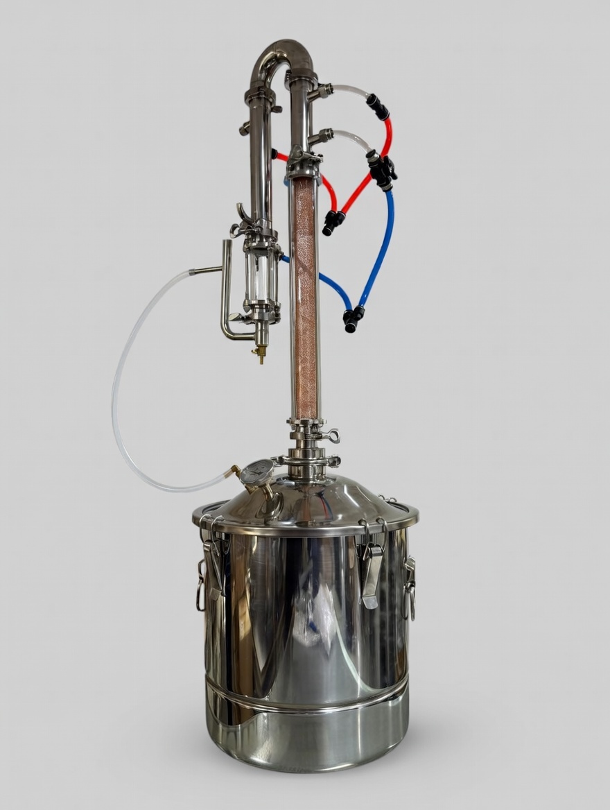 - Incluye abrazaderas para conectar la cámara de destilación con el condensador. Estas tuberías están diseñadas para soportar altas temperaturas y presiones durante el proceso de destilación.